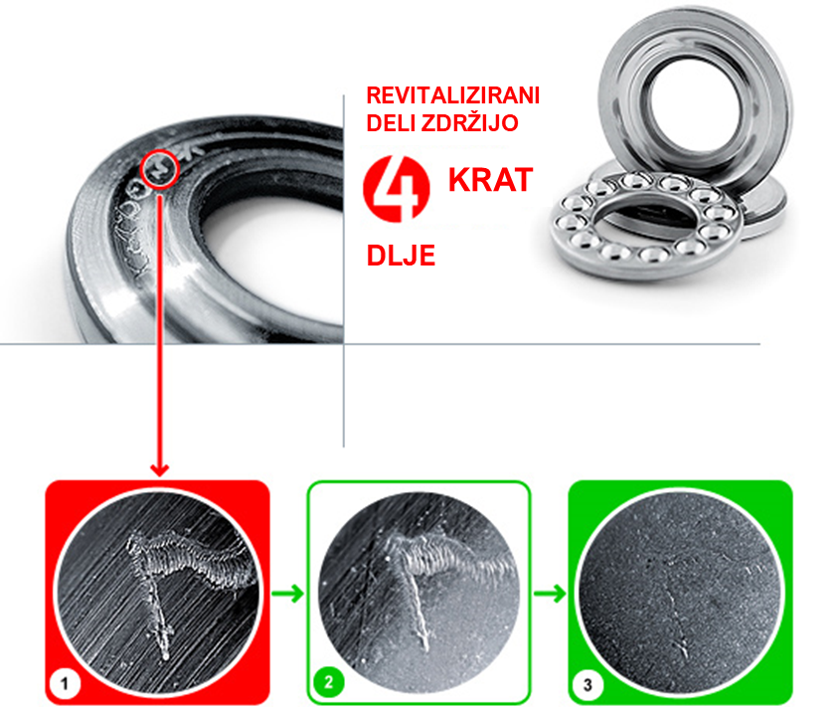 procesa revitalizacije keramično-kovinski delci nastopijo na mestu obrabe dela.